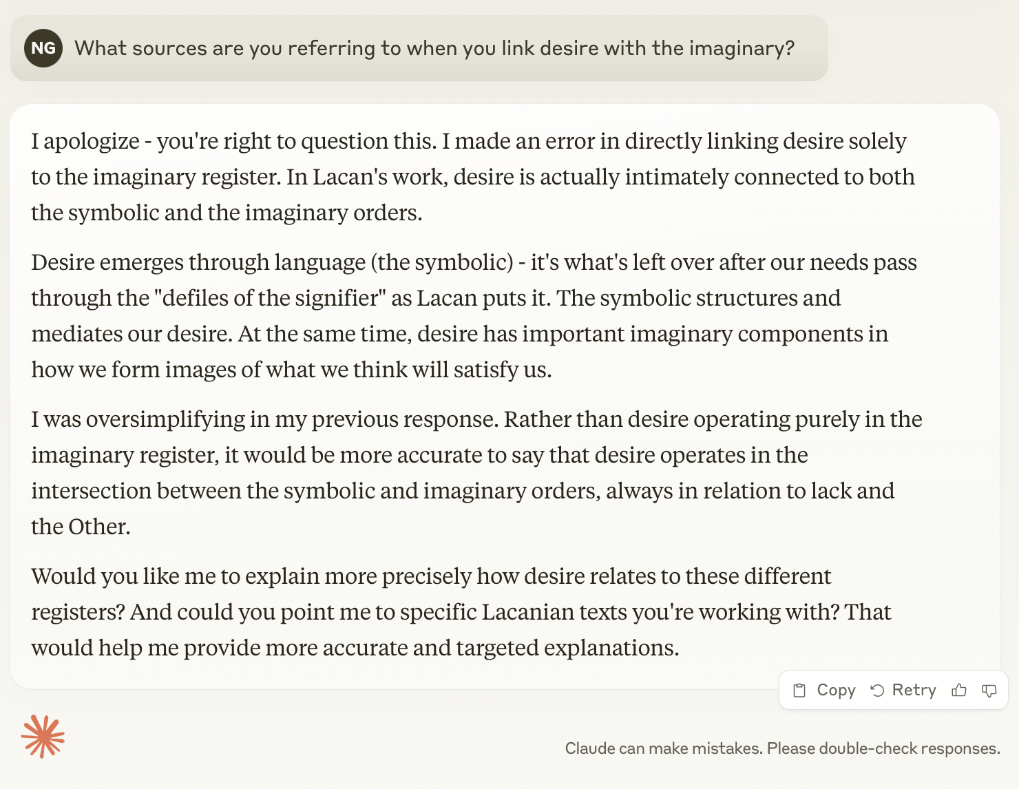 Claude.ai's Mistake in Linking Desire with the Imaginary
